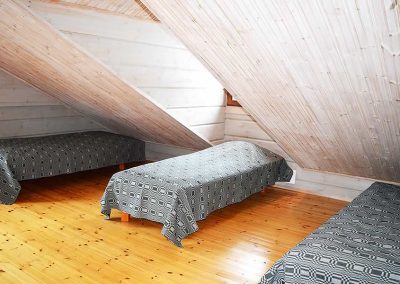 Toisessa makuuhuoneessa on kolme vuodepaikkaa ja toisessa viisi vuodepaikkaa. Sänkyjen paikkoja on sallittua vaihtaa tarpeen mukaan.