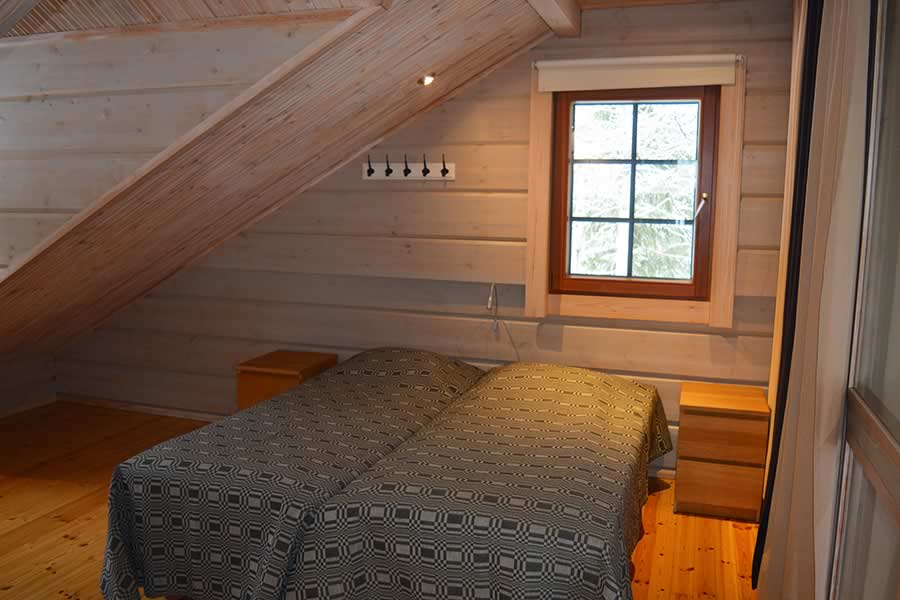 Toisessa makuuhuoneessa on kolme vuodepaikkaa ja toisessa viisi vuodepaikkaa. Sänkyjen paikkoja on sallittua vaihtaa tarpeen mukaan.